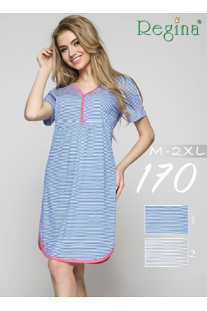 Pohodlná a komfortní dámská noční košile. Košile je vyrobená z velmi kvalitní a neobyčejně měkké a příjemné pruhované bavlny. Výstřih ve tvaru písmene "V" se zapíná patentkam. Model má střih, který ocení zejména těhotné a kojící ženy. Světle melanžovou barvu zdobí lemovka v mátové barvě. Složení: 100 % bavlna.