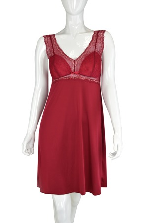 Luxusní košilka Mishkata v červeném provedení. Originální a jedinečný střih, který zvýrazní vaše bujné křivky. Hladká látka je obohacena černou vzorovanou krajkou v oblasti hrudníku a ramen. Krátký rukáv dodává elegantní styl. Ve výstřihu se nachází brožované srdce. Součástí balení jsou kalhotky, ladící s košilkou. Materiál 94% viscose, 6% spandex