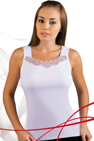 Dámská košilka Milia Emili - bílá barva - decentní kulatý výstřih - ve výstřihu ozdobná krajka v bílé barvě - širší ramínka - pohodlný materiál - příjemný materiál - pod oblečením nejde vidět