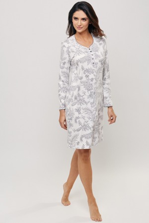 Efektní, dlouhá dámská košilka z viskózy 94% a příměsí elastických vláken. Na poprsí jemné řasení. V horní linii a pod poprsím síťovina s květinovou výšivkou. Úzká, elastická, nastavitelná ramínka.