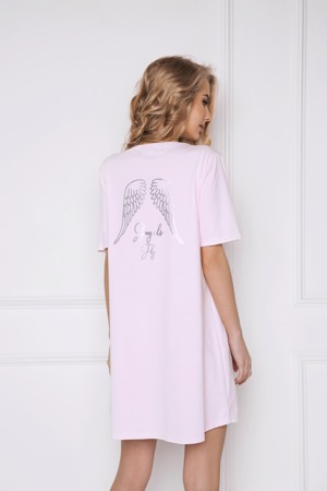 Dámská noční košile s krátkými rukávy. Košile má volný a pohodlný střih. Model je vyrobený z jemné hladké bavlny příjemné na dotyk. Zadní díl košile je ozdobený efektním lesklým potiskem. Délka košile je nad kolena. Složení: 100 % bavlna.