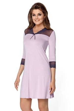 Velmi žensky působící dámská noční košilka. Košilka je vyrobená z viskózy a elastanu, díky čemuž se dokonale přizpůsobuje tělu a při nošení je neobyčejně komfortní. Model má výstřih ve tvaru písmene "V" a rukávy ve 3/4 délce. Vrchní část košilky a spodní okraje rukávů jsou olemované fialovou krajkou. Ve přední části modelu je ozdobná mašlička. Produkty Babella se prodávají ve vkusném a elegantním balení, a proto se mohou stát skvělým dárkem pro vaše blízké a přátele. Složení: 94 % viskóza, 6 % elastan.