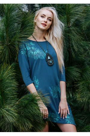 Efektní dámská noční košile - šaty s 3/4 rukávy. Košile je vyrobená z měkké hedvábné viskózové látky. Na vnitřní straně modelu je pentličkový způsob spletení příze, tzv. FRENCH TERRY. Volný střih je zárukou pohodlí a komfortu při nošení. Přední díl košile je ozdobený potiskem. Spodní okraj modelu je asymetrický...