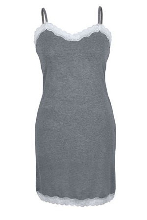 Dámská noční košile, která je vyrobená z velmi kvalitní viskózy. Model má úzká ramínka, jejichž délku je možné nastavit. Dekolt a spodní okraj košile jsou olemované ažurovanou krajkou. Složení: 95 % viskóza, 5 % elastan.