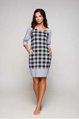 Dámská noční košile s 3/4 rukávy, sportovního střihu. Má polokulatý výstřih. Rukávy a spodní okraj jsou jednobarevné. Na bocích jsou pohodlné kapsy. Složení: 100% bavlna