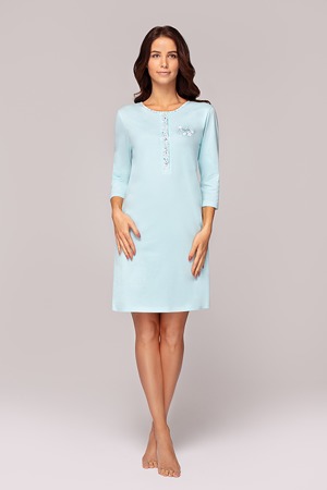 Pohodlná a komfortní dámská noční košile, která je vyrobená z velmi kvalitní, stoprocentní bavlny. Přední díl modelu je ozdobený barevnou květovanou aplikací. Půlkulatý výstřih se zapíná knoflíčky...