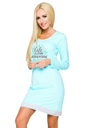 Bavlněná dámská noční košile s dlouhým rukávem ve světle tyrkysové barvě. Složení: 100% bavlna