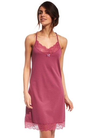 Neobyčejná noční košilka zdobená krajkou na přední straně ve výstřihu do písmena "V". Na zádech jsou ramínka uprostřed spojena do krajky. Spodní lem je zakončen příjemné krajky s květinovým motivem...