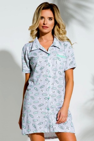 Pohodlná noční košile 2139 Dalia 01 Taro - je vyrobená z velmi kvalitní vzorované bavlny - má klasický střih s límečkem - zapíná se na knoflíky