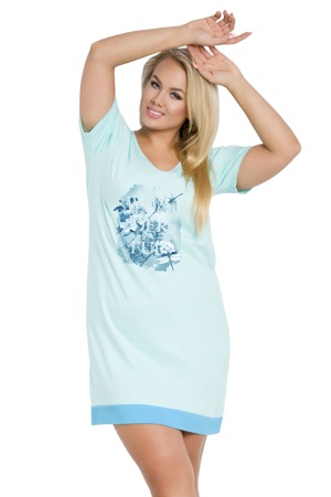 Tyrkysově modrá dámská noční košile s potiskem a nápisem, z kvalitní jemné bavlny. Složení: 100% bavlna