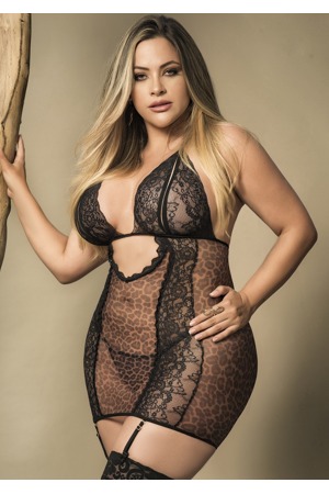 Chcete překvapit někoho speciálního nebo hledáte jen zajímavý kousek k doplnění večerní garderoby? Krajková košilka se zvířecím potiskem a tangami může splnit obojí. Krátká babydoll košilka se zavazuje za krkem, pod prsy je prostřižena pro zdůraznění Vašich partií a součástí jsou i podvazky, které lze odepnout...
