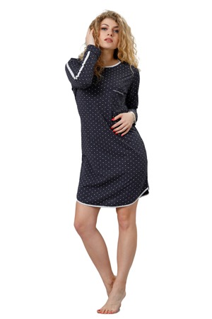 Komfortní dámská noční košile pro těhotné a kojící ženy z kolekce Doctor Nap. Model má krátké rukávy a kulatý výstřih, u kterého jsou dva zipy, jež usnadňují přístup k prsům. Košile má pohodlný střih a je ozdobená zábavným potiskem. Gumičky ve spodní části modelu krásně zvýrazňují ženskou postavu. Košile je vyrobená z velmi kvalitní bavlněné tkaniny. Použitý materiál má certifikát bezpečnosti OEKO-TEX Standard 100...