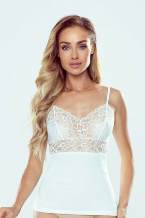 Dámská košilka Kama Eldar - bílá barva - výstřih ve tvaru "V" ozdobený ažurovou krajkou s květinovým motivem - tenká ramínka - příjemný materiál...