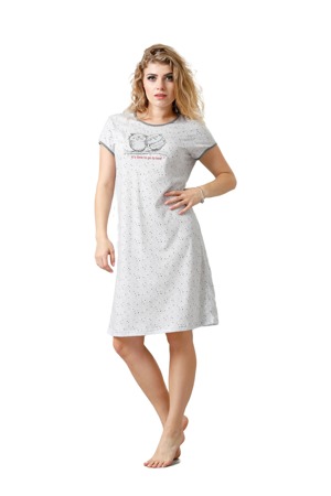 Noční košile pro těhotné a kojící ženy. Žlutá barva s šedými tečkami. Pohodlná noční košile s krátkým rukávem a výstřihem se snadným přístupem ke kojení. Pod prsy je pásek na stáhnutí, díky kterému se může košilka Noční košile pro těhotné a kojící ženy. Žlutá barva s šedými tečkami. Pohodlná noční košile s krátkým rukávem a výstřihem se snadným přístupem ke kojení. Pod prsy je pásek na stáhnutí, díky kterému se může košilka stáhnout podle velikosti těhotenského bříška. Je vyrobena z čisté kvalitní bavlny velmi měkké, hebké a příjemné na dotek. Celková délka nad kolena. Materiál: 100% bavlna